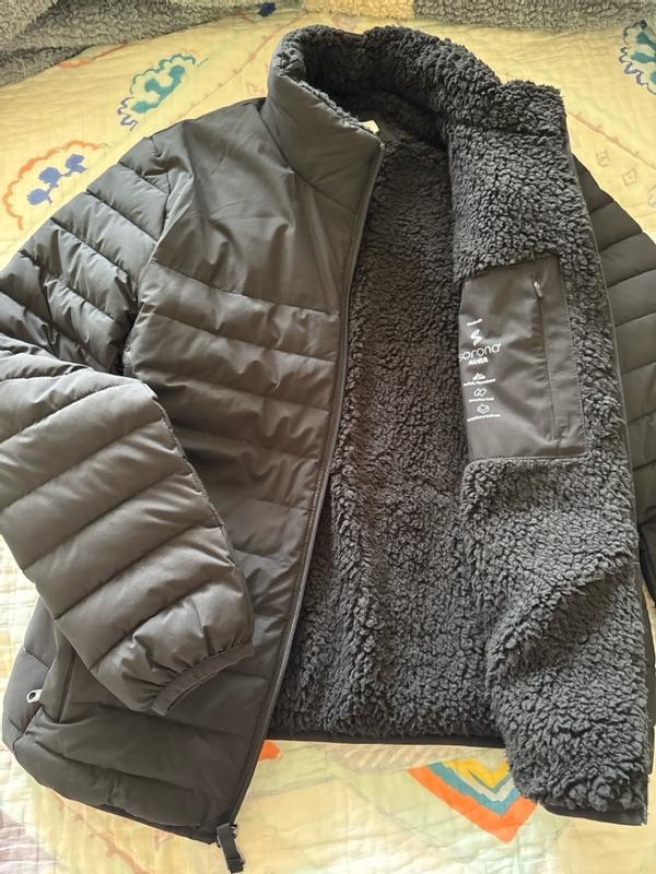 This is going to be an all positive review. Honestly there isn't anything negative to say. The jacket size fits perfectly. It's just plush enough to keep you warm but light enough to not be over bearing. Easy to carry or tuck away in your bag and pull it out, give it a shake and it's ready to wear. No issues with the zipper getting caught in the inner lining. I did spill on the jacket, but I wiped up easily. Did I mention how soft it is? Well it's soft and feels really well made. Might be a jacket I'll get to wear for two seasons.