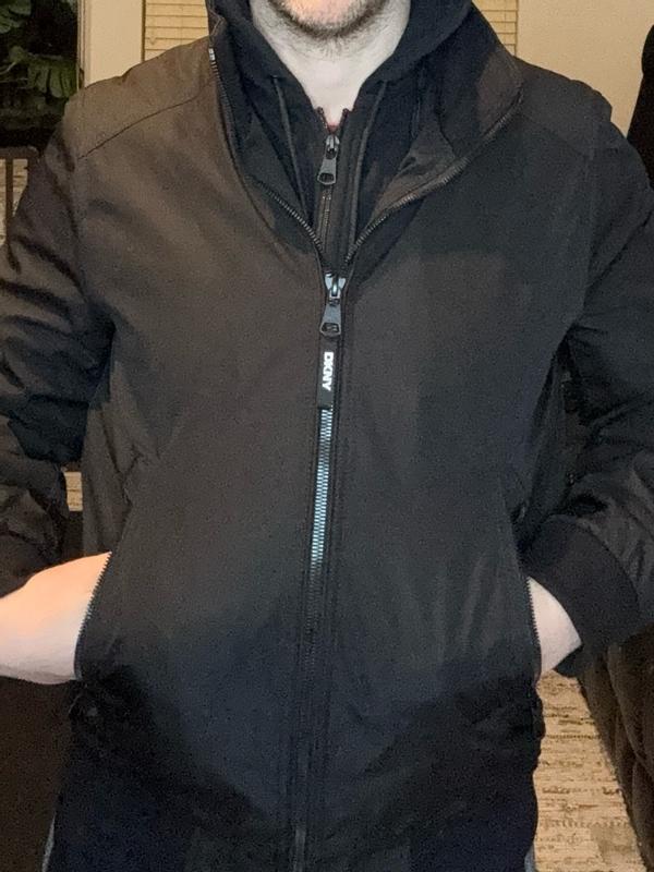 I loved this DKNY mens removable hood water resistant bomber jacket. I loved how it perfectly fit to me. It’s comfortable to wear. Made from heavy duty material. The zipper works good. It’s very stylish. Loved it