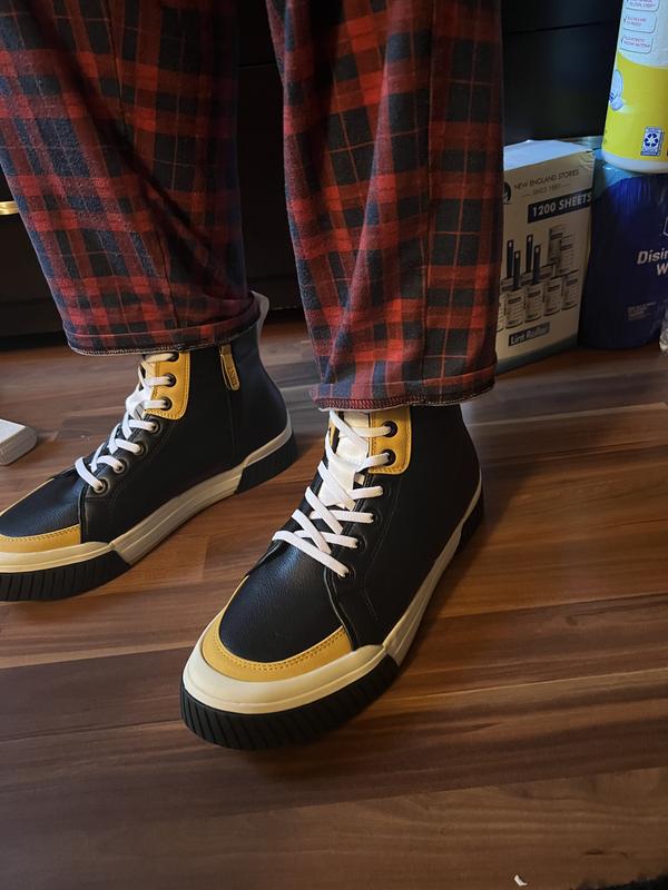 Men's Side Zip Hi Top Two Tone Branded Sole Logo Sneakers