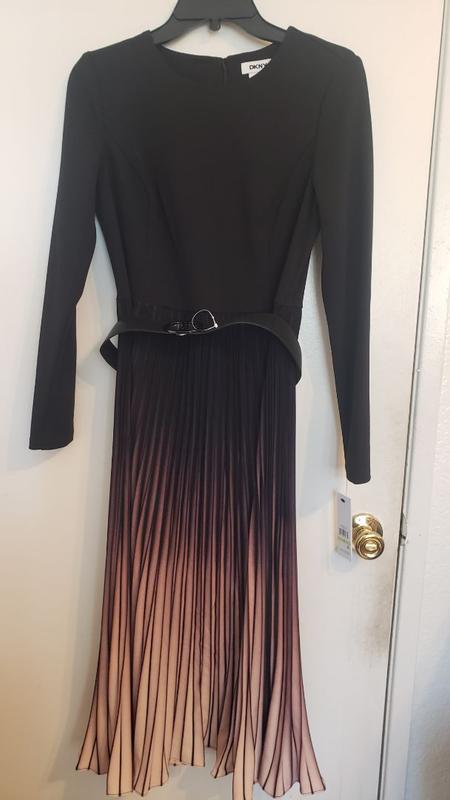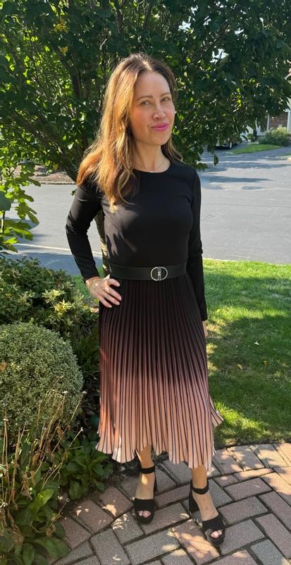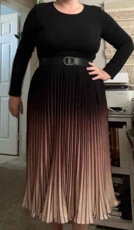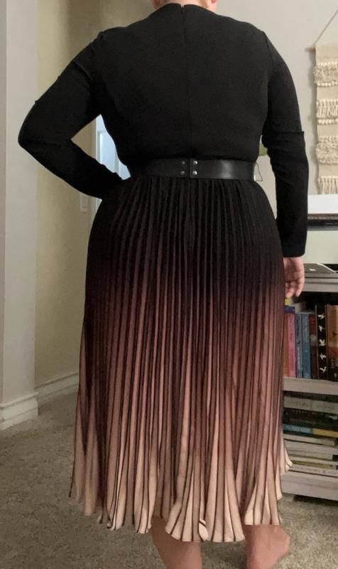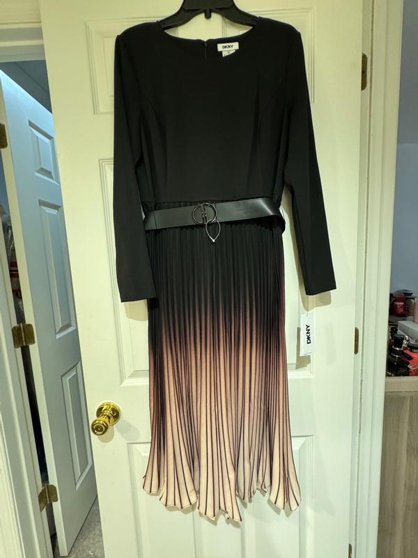 Women's Ombré Sunburst Pleat-Skirt Long-Sleeve Midi Dress