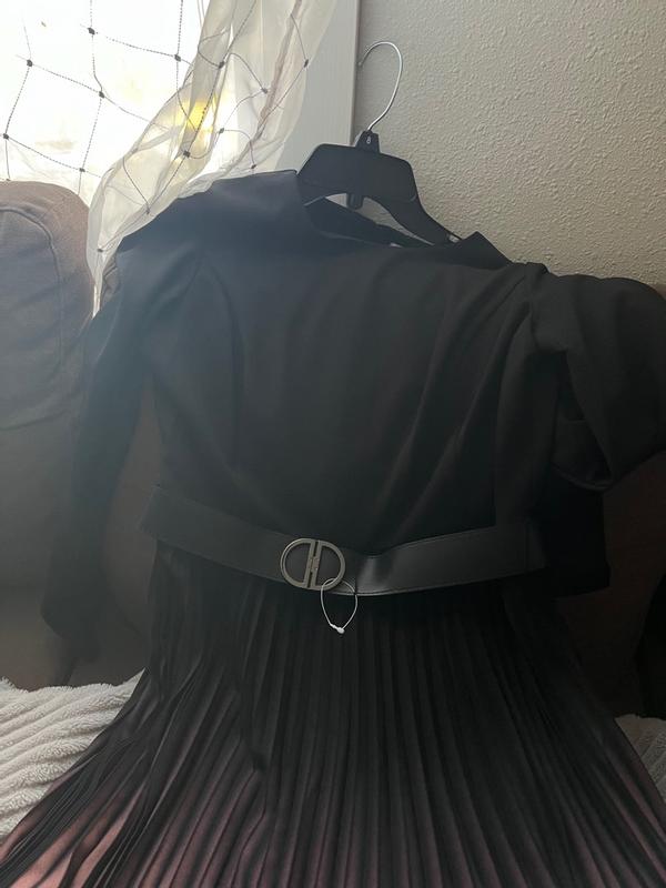 Beautiful dress! the pleats have hints of plum, which I love. Perfect to dress down or wear to a formal occasion. I'm so happy I ordered it, and it was on sale~!~