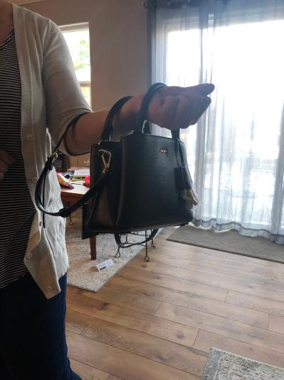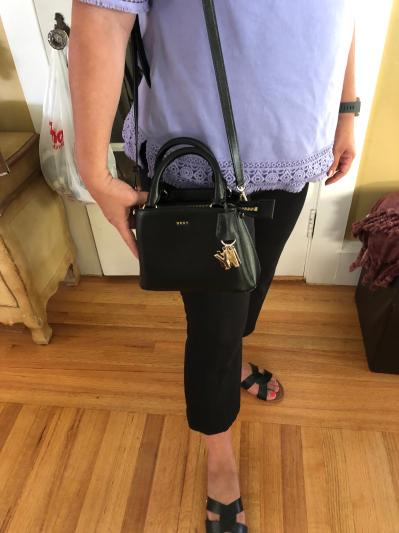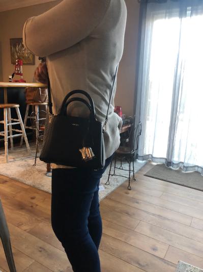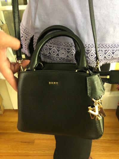 As a mom with a toddler this little purse is perfect! I usually carry a backpack purse for comfort and organizing but this bag made it simple! The DKNY letters make noise but not bothersome. The only thing I wish is that I had it in red! But the black receives plenty of compliments!