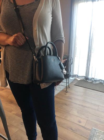 I typically carry my life in my handbag so was a bit hesitant to try a smaller handbag from DKNY. This has now become my go to purse. The bag is extremely stylish and has multiple compartments to my surprise. Although small, there is enough depth to hold several items; keys, cell phone in a wallet case etc. I have received many compliments on the bag. The leather is high quality and is similar to other DKNY bags which I have owned for years! I highly recommend this product, you will be pleasantly surprised.
