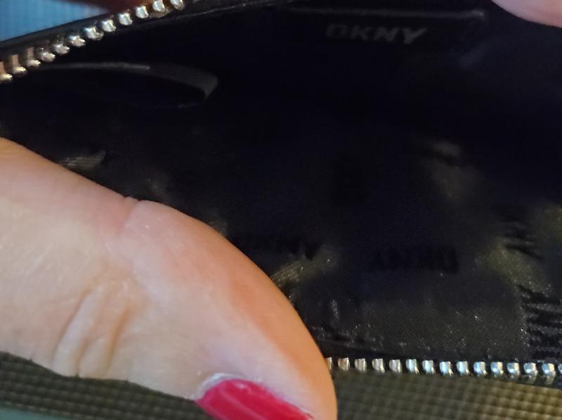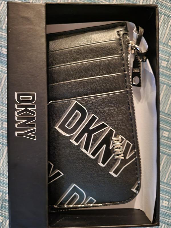 This wallet is perfect size for me. Not huge so can put in smaller bags but large enough for essentials. Has space on outside for credit cards/license etc. for easy access and a zipped compartment for cash or coins or whatever needs to be zipped. Pairs nicely with DKNY bags. The DKNY logo big on outside so can see it quick in bag. Good.