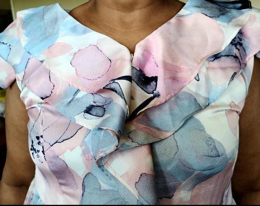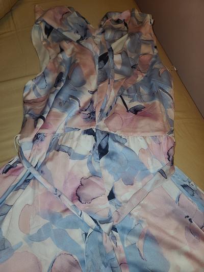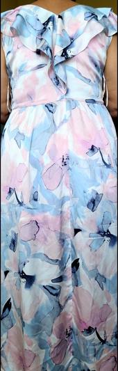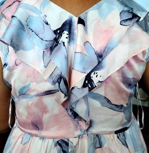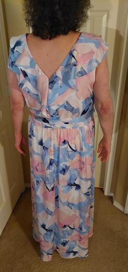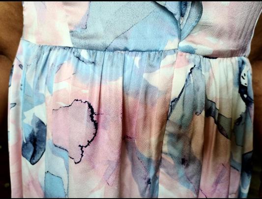 The pictures don't do this dress justice! It's the most sumptuous feeling fabric and the water colored design is pretty, feminine and and flattering to all skin tones. Perfect for a dressy occasion or a fancy dinner out with that special someone!