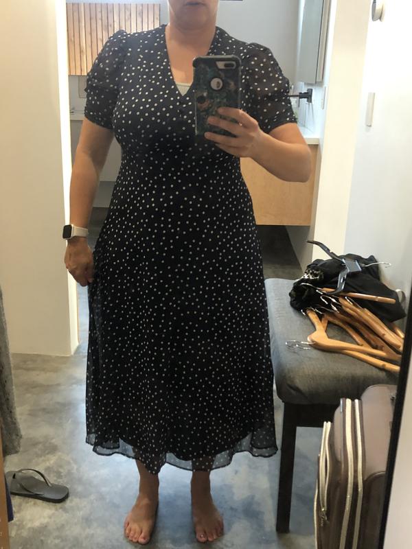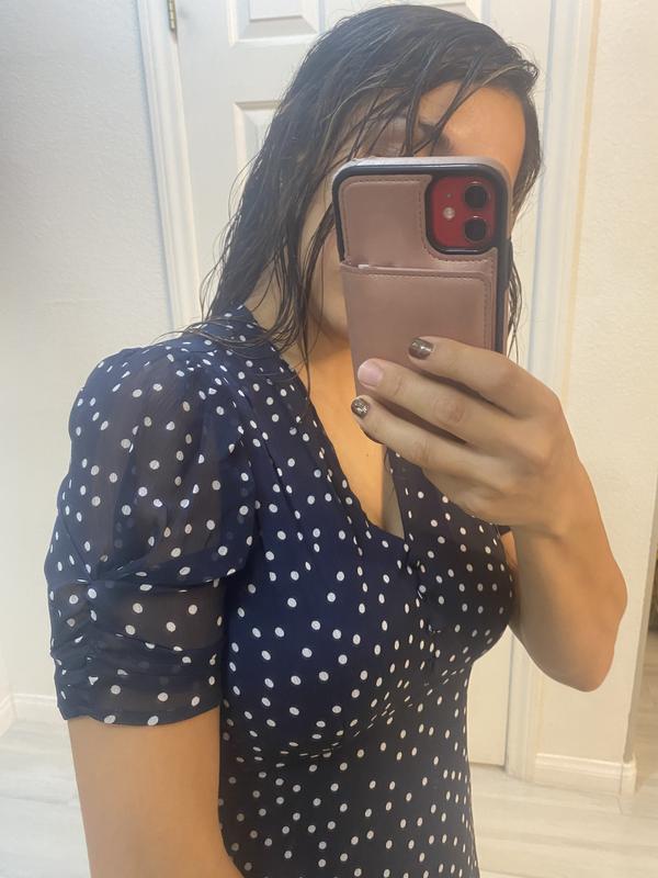 DKNY does it again, I own several dresses DKNY and love each and everyone of them. They all have a great fit. However this polka dot dress not only does it have a great fit and flair style and very versatile. Great for a nice dinner date or a casual event.