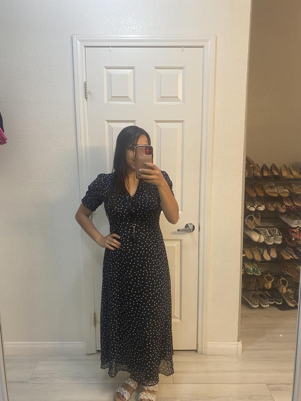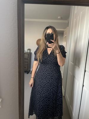 If you like polka dots, this dress would look great on you. Lose fit that flatters the body. I didn’t love it but I think the comfort made up for it. The dress is a 3/4 length and is nice for a modest casual event.
