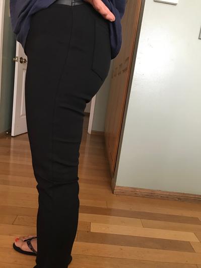 Love the fabric and fit except for too long in the crotch. Often, pants are too SHORT in the crotch for me so, in this case, it’s the pants, not the body. Just flew on a plane and the pants hung below my crotch in the x-raybsubjecting me to a very thorough pat down by TSA. I will try to turn th waistband over and stitch as one other review mentioned.