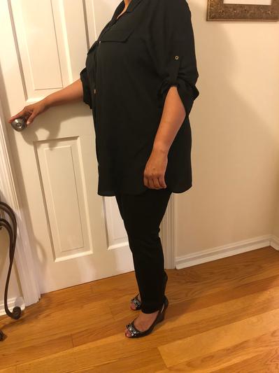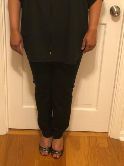 Really cute and comfortable pants. Although these have a snug look they are really comfortable to wear. I’m 5’6 feet tall and the length fit perfectly down to the ankle. I wore these with high heels while out dancing and was able to move comfortably in them.