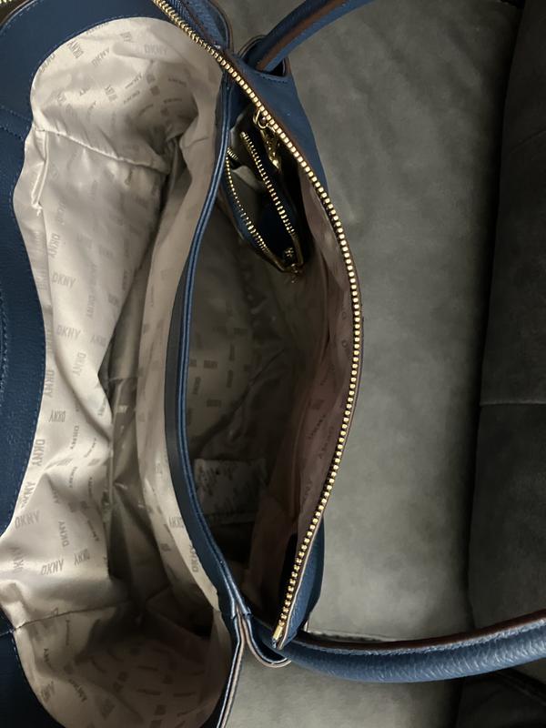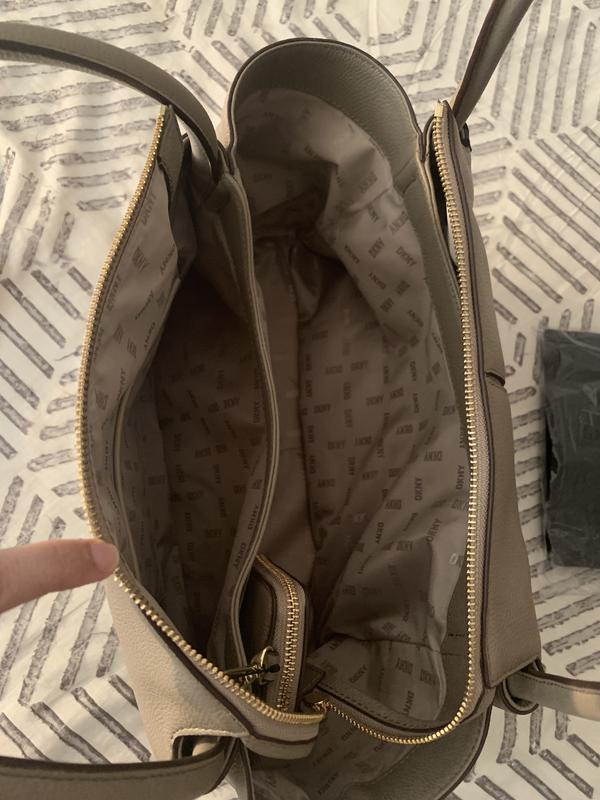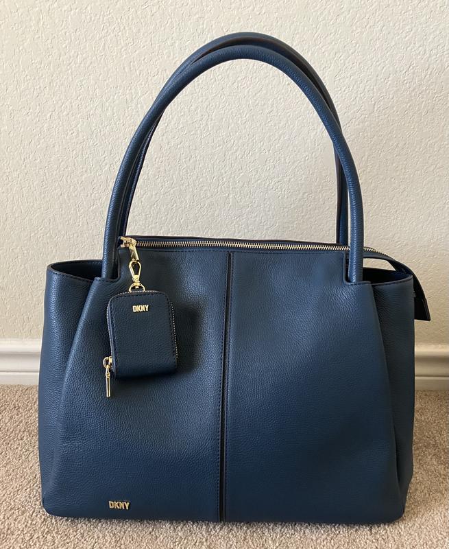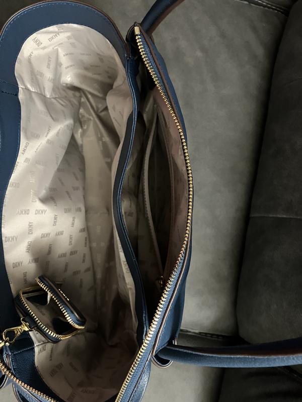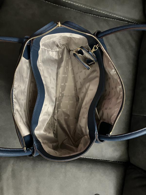 The DKNY Sabina tote is such a quality made product. It is beautifully stitched together and comes with a dust bag for storage. I love the coin purse on the inside that clips into place for east location of it. Nice and roomy to store lots of goodies.