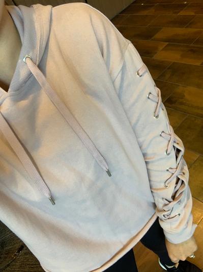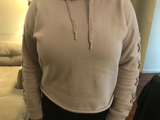 This is such a comfortable cropped top hoodie. I can wear it inside all day around 74F without heating up. My favorite part is the cute lace detail on the sleeves. However, you will need to wear full sleeves underneath, as the cold air can get in through the arm spaces. The hoodie also has functional drawstring on the hood, and metal logo engraved caps on the end to prevent fraying. Im 4’11, about 140lbs, and the bottom of the hoodie hits right above my hips. It rides up a bit when sitting, and the bottom also rolls up a bit. I also got considerable amount of fuzz on my black undershirt the first day, but that issue resolved after that. My favorite way to wear this hoodie is with a long, fitted t-shirt underneath, paired with skinny pants. I would definitely recommend this product for the superior comfort, and the super cute lace detail on the sleeves.