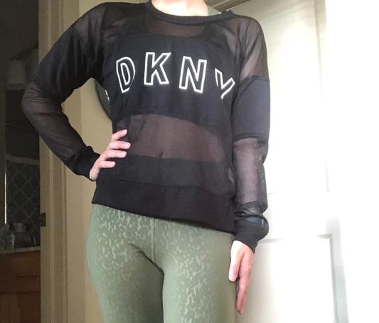 First like all dkny products the material is quality! This in no way resembles fishnet. Its sexy yet athletic looking. So looks wise i am in love with this top however fit wise i wish i would have sized up. Im only 5'1'' and the length falls right to the top of my hip. Im not busty so that isnt bringing the height up. I usually like things longer and because im short they usually are. Also the arms are pretty slim so if you are muscular or like a looser sleeve I'd size up.