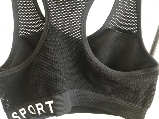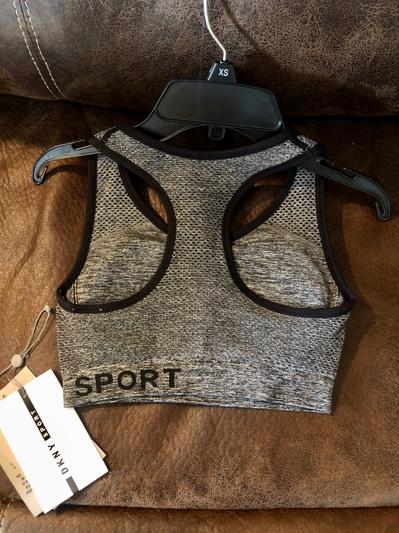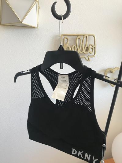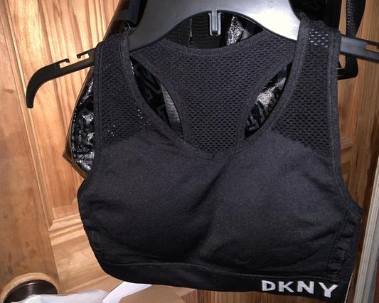 I tried the DKNY sports bra in hot pink and it is very comfortable! The back side is made of a mesh fabric that if very breathable when working out. The band on the bottom is elastic that stretches easily to fit to your size and holds the breasts in place while exercising. The bra has removable pads for washing and also for breast support.
