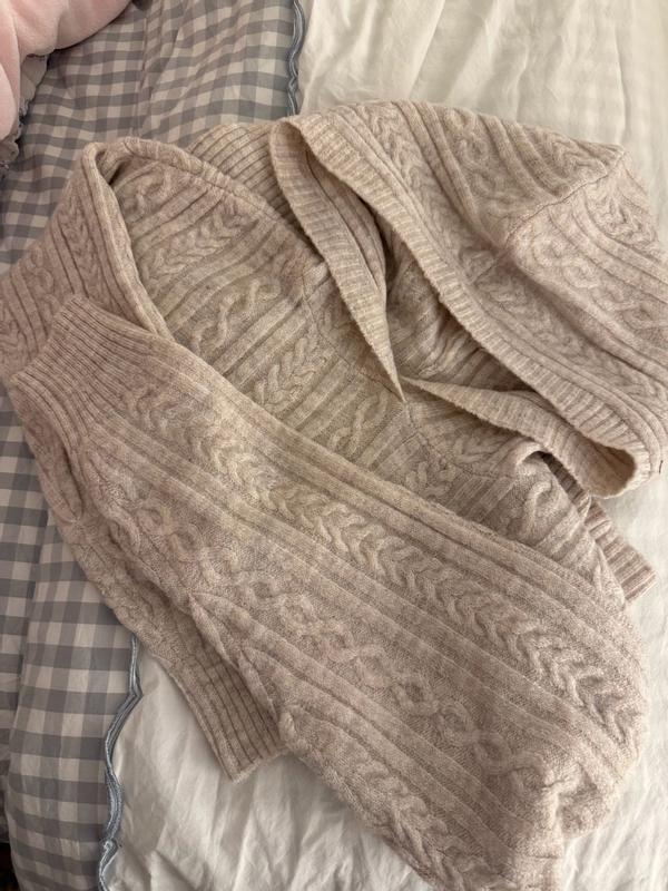 I LOVE this hooded cable-knit sweater! It’s incredibly comfortable and made from super soft material. The natural off-white/tan color is gorgeous and pairs well with just about anything. You can easily dress it up with chunky gold bracelets or keep it casual with colored leggings for a fun twist. I also tested how sheer it is by wearing a black bra underneath, and to my surprise, nothing showed through at all! The length is great, and it’s lightweight while still keeping you warm. You can always layer a vest over it on extra chilly days for even more coziness. I’m wearing a size large (I usually wear a medium, but I love the slightly baggy, relaxed fit). For reference, I’m around 5'2". 10/10 recommend adding this to your closet!