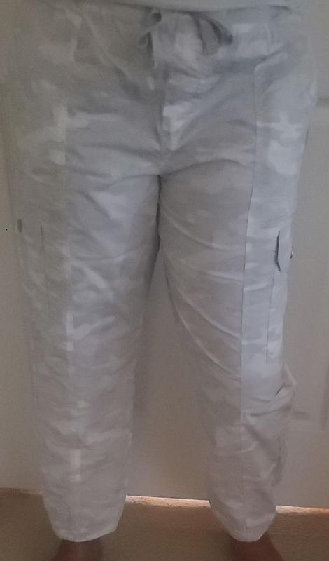 Did not look like photo when I received. On the model it looked somewhat slim and tailored. I generally wear a size 8 in DKNY and have many DKNY clothes. So that is usually a M or possibly a S. When I received this size M of these pants they could have been a XXL! They were huge everywhere. They were not described as a relaxed fit nor did they look baggy on the model. I think if I order a S they would still be very big. For the price I totally expected a better looking and better fitting pair of pants.