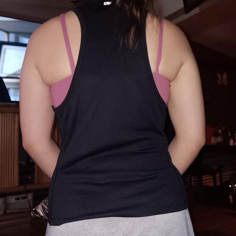 I really like the feel of the fabric. The cut is also nice, just be aware that you will need to either wear a sports bra underneath or have a way to clip the straps together so they don't show.