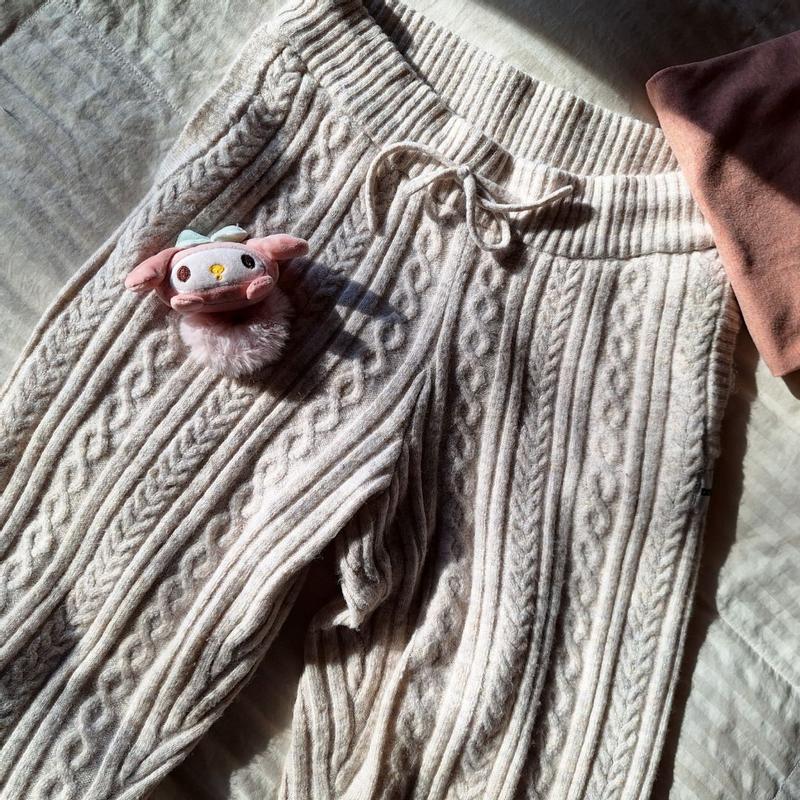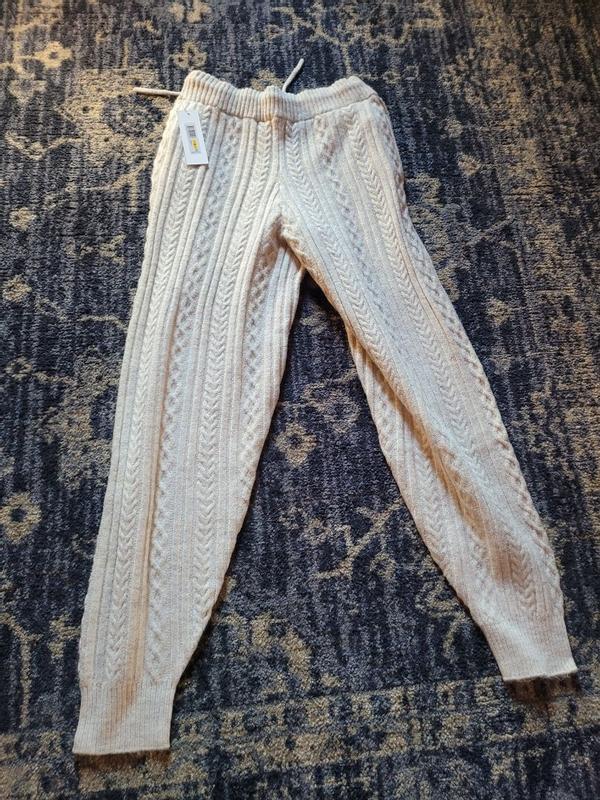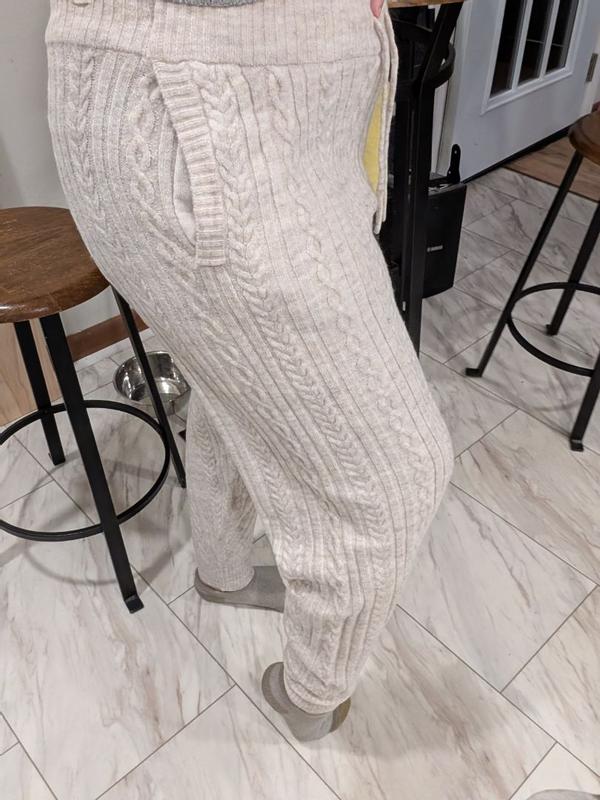 Incentivized. These knit joggers are quite soft and very cute. The color is beautiful and fit nicely with a drawstring. They stretch out slightly while wearing but retain its shape pretty well.