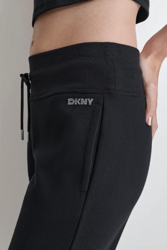 Women's Drawstring Rhinestone Logo Fleece Jogger Sweatpants