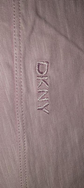 Lightweight shirt with heavy trim? The edges of the shirt around the sleeves are thicker knit and folded which i like which helped keep the shirt down and retain its shape. I like the attention to detail, the knit is very tight and high quality. The neckline had a "v" patch which is a nice touch, but my favorite is the DKNY embroidered logo on the back. I tend to avoid logos that are too "loud" but this logo is just perfect. The color is a perfect blend of soft pink and lavender. Definitely one of my new favorite shirts