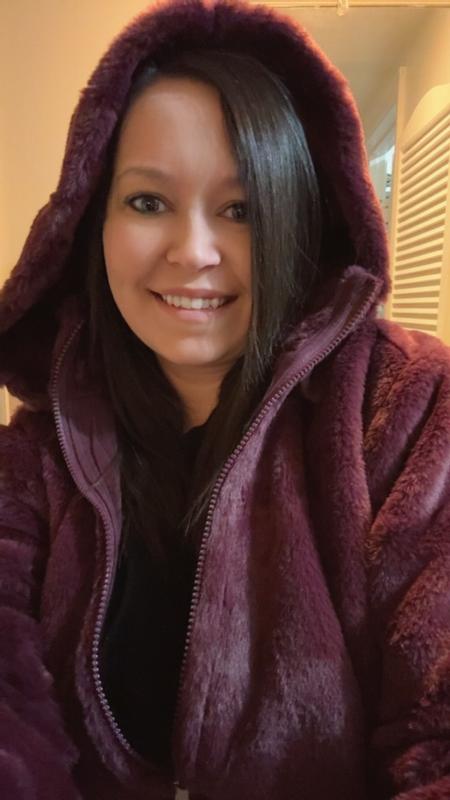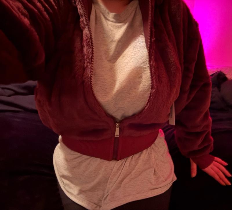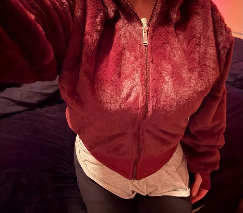 It’s so soft and luxurious feeling! It feels like wearing a cloud. The arms are very roomy and it’s the cutest cropped winter jacket. You can dress it up or down and it has thumb holes! I feel expensive in it and it’s super warm, the zipper is very easy to manipulate and it’s extremely flattering on. The craftsmanship would make me think this jacket is at least double the price. Just a beautiful jacket, beautiful cut and I love the color! It’s really a standout piece and I can’t wait to wear it out!