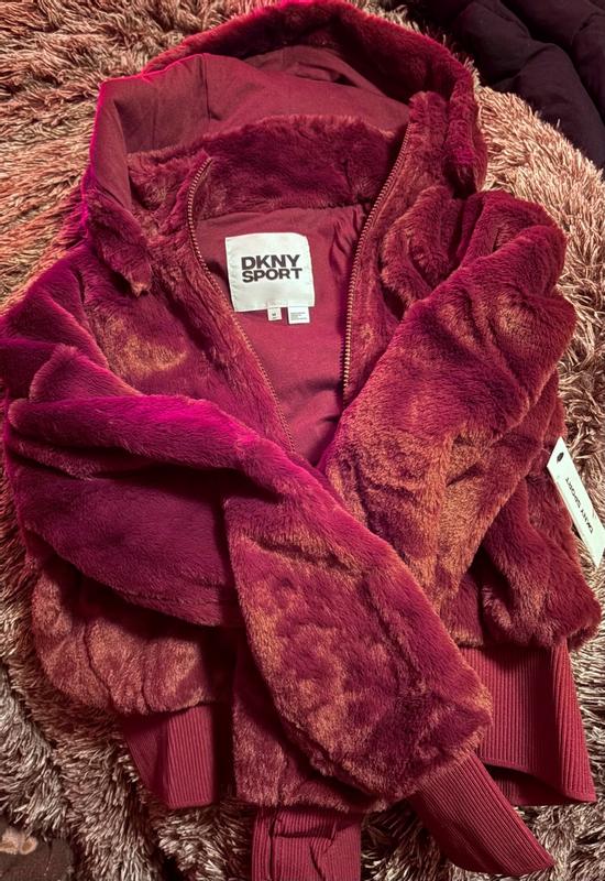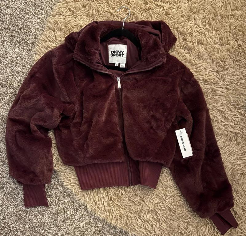 The jacket is beautiful but lacks the basic cold weather feature which is pockets. The hood comes off which is a great option but the no pockets is making me return it. Especially in cold weather, I need a place for my hands. Come on DKNY, pockets are a necessity!