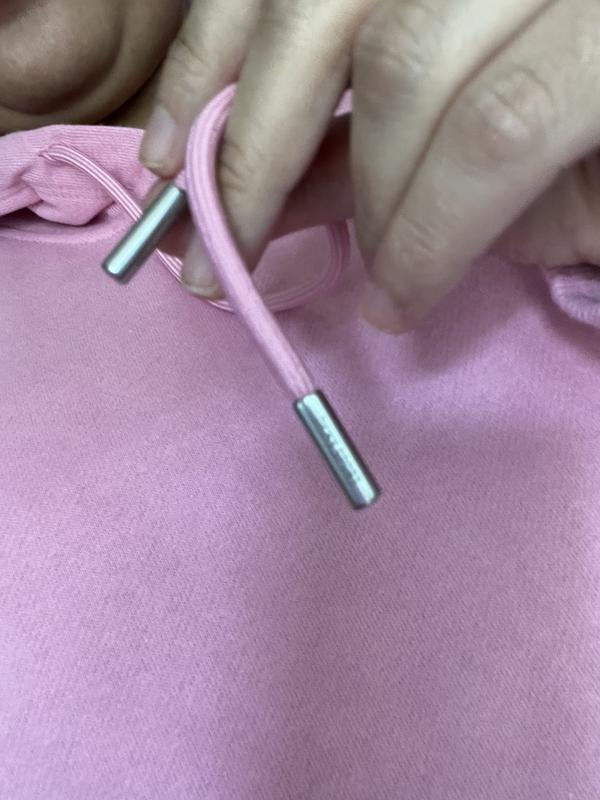 I bought this in black as a gift. My daughter in law loved it. Runs true to size and as expected from DKNY superb quality. The silver DKNY accent is just enough to set it apart from a boring black hoodie.