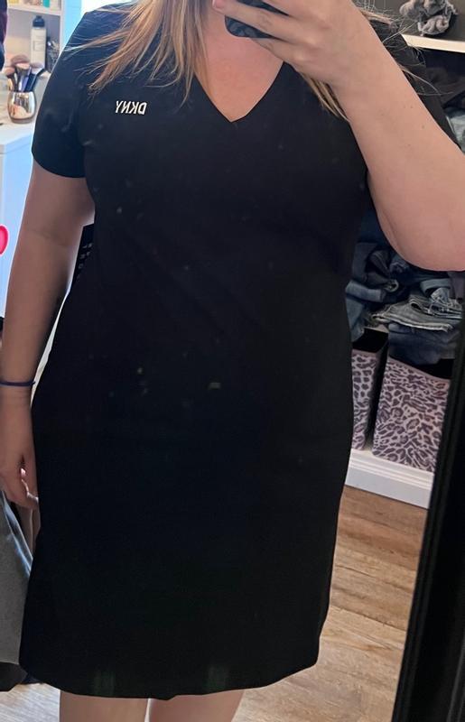 Tnis DKNY dress is awesome. You can dress it up or wear it casually. The fit is great and the material is well made. It also goes wirh anything. I will definitelty be wearing this throughout the summer.