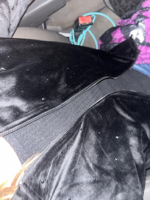 Very comfortable and soft, heavy, velvety material. I’ve been wearing it all the time at home and for a walk! I put it in a mesh laundry bag and washed in cold water in the machine and flat to dry it turned out perfect. The sparkles are not too flashy. The size runs big and the pants were too long. I’m petit and ordered small it was too large for me. Returned and ordered XS it fits great. Definitely a nice piece :)