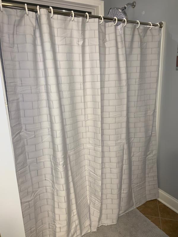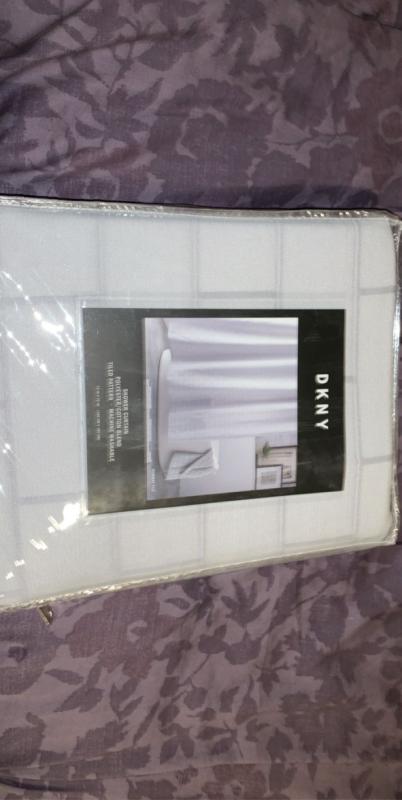 I love my new shower curtain! It has a really pretty subway tile pattern and looks great in my bathroom! The fabric is well made and it hangs well. This curtain replaces one I’ve had for several months that was already showing wash wear. I can tell that this DKNY curtain is made of a better fabric so hopefully it will wash and last much longer! I am very pleased with this shower curtain!
