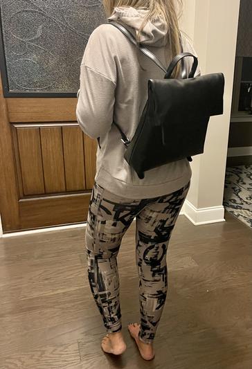 Very soft and comfy with several pockets and 2 ways to open your bag. Wear it as a backpack or carry it, your choice. I love the color