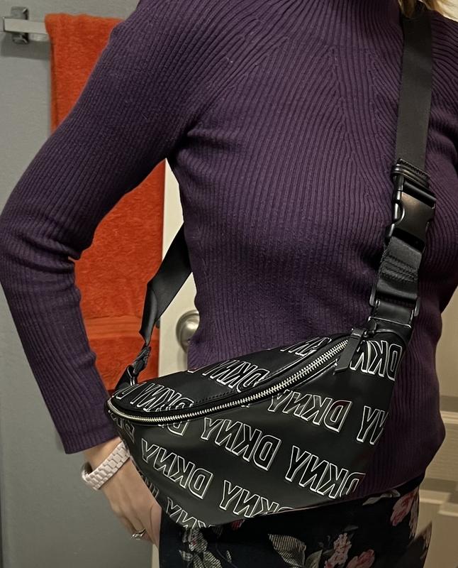 I received this sling bag as a promotional product and at first I was skeptical because I am overweight and don’t like anything bringing attention to my body and after much hesitation, I finally decided to utilize this and I am happy that I finally did. This is just what I needed. I have nerve damage in both of my hands and arms due to years of my profession which requires heavy and constant typing. For years I have carried really big bags. Now that I can’t carry big bags, I have to carry a smaller bag but finding a bag that could fit all of my essentials was difficult until I received my DKNY Tilly Sling Bag. I don’t have to wear it around my waist which is a major plus. I wear it as a crossbody bag or a messenger bag and it’s not heavy or cumbersome. The first thing I don’t like is the brand advertised all over the bag in big bold letters. Nonetheless, I still use it daily. The other thing that is a downside is that the material doesn’t feel like it’s of a high quality grade so be careful not to overfill because the material feels like it will rip and tear easily.