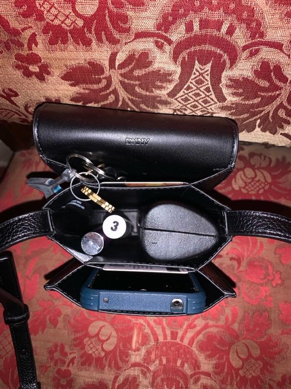 I was surprised to see that I could carry more in this bag than I had thought. Very convenient and stains can be washed off easily with water. It's the proper length length for me and much more appropriate for any of my needs which onclude shopping, walking my usual 2 miles per day and slips easily into my gym bag as well as dressy for church. In other words fits into my routines and once again I want to reiterate that it carries much more than one would think. I definitely recommend this purse. Maureen Wild,