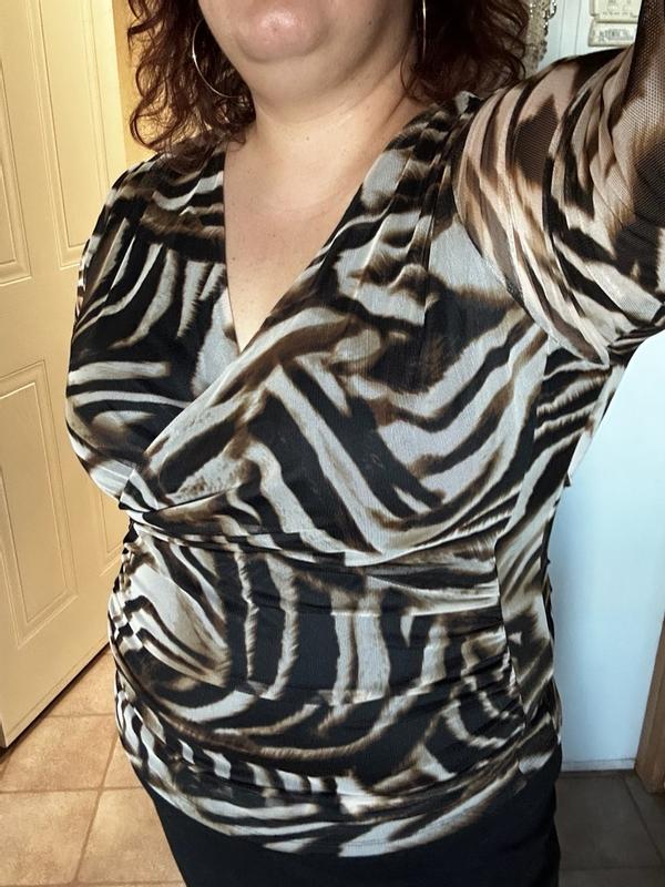 Women's 3/4-Sleeve Printed Mesh V-Neck Top