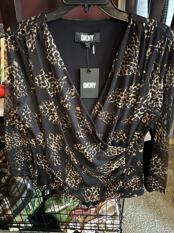 Women's 3/4-Sleeve Printed Mesh V-Neck Top