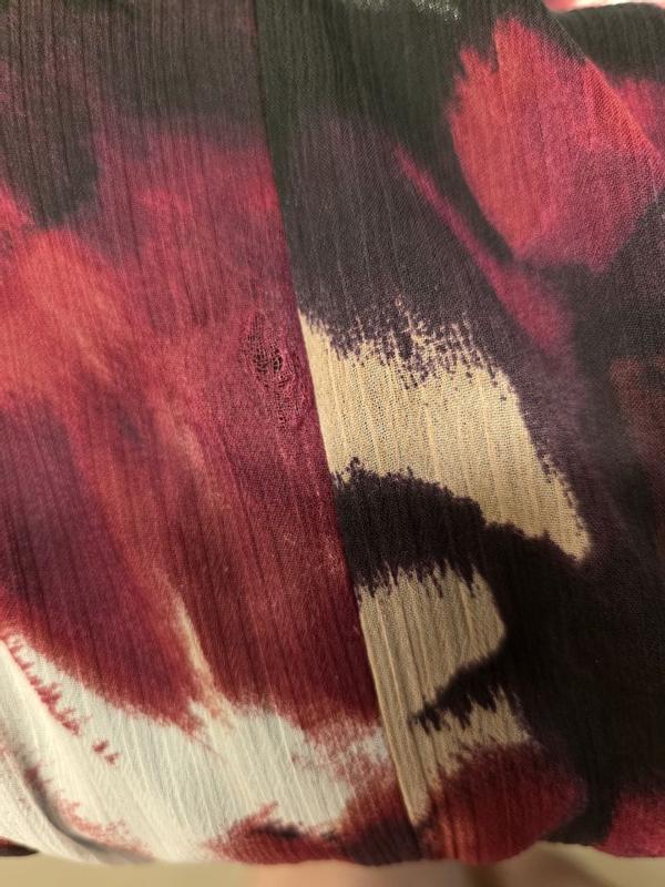 Love this dress. It is tailored well and comfortable. Great for minimizing a large bust. Highly recommend. The colors are beautiful.