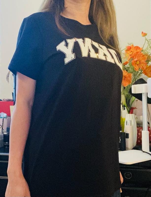 Women's Active Rhinestone-Logo Distressed Crewneck Cotton T-Shirt