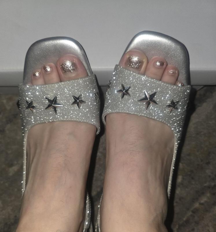 I purchased the size 8 1/2 for my daughter, but her foot was too wide. Thankfully, her best friend was able to wear these and she is extremely excited to wear them to prom. They are elegant and shimmery silver that will go perfect with the lights and glamour of senior prom. The radiant silver stars on the top, give it an extra touch of dazzle, without it going over the top. They are very comfortable and the heels seem very durable. Designer shoes at an affordable price. These will go with so many prom dresses and evening gowns would even be perfect for bridesmaids. I highly recommend them. I would definitely purchase..