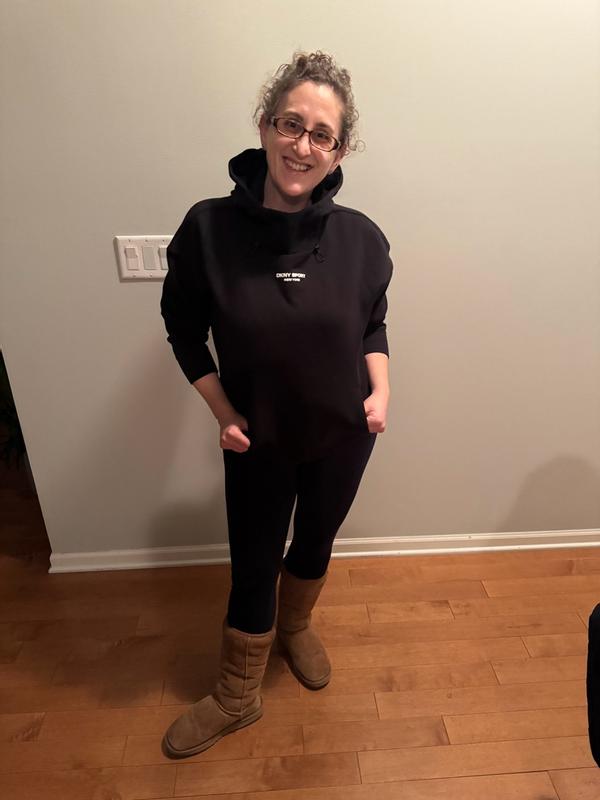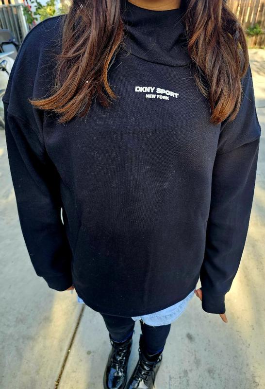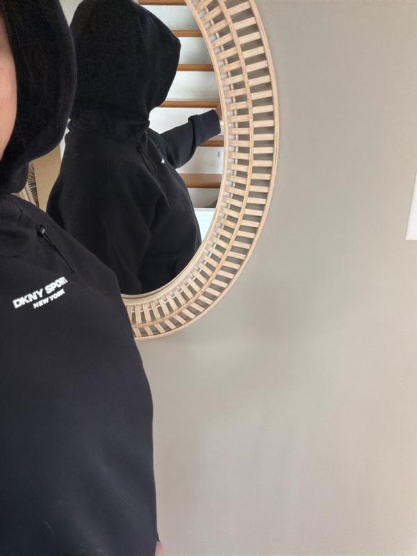 The DKNY Brooklyn Scuba pull over hoodie is such a nice addition to my wardrobe! It's material is breathable but feels like it keeps the bitter cold air from coming in, it's also a softer less bulky material which makes me feel less restricted. I could comfortably wear a jean jacket over it without feeling like it's thick or bunched up. I LOVE that it has a wider/bigger hood than a typical hoodie too. Overall great quality and super comfortable! Go get you one too!