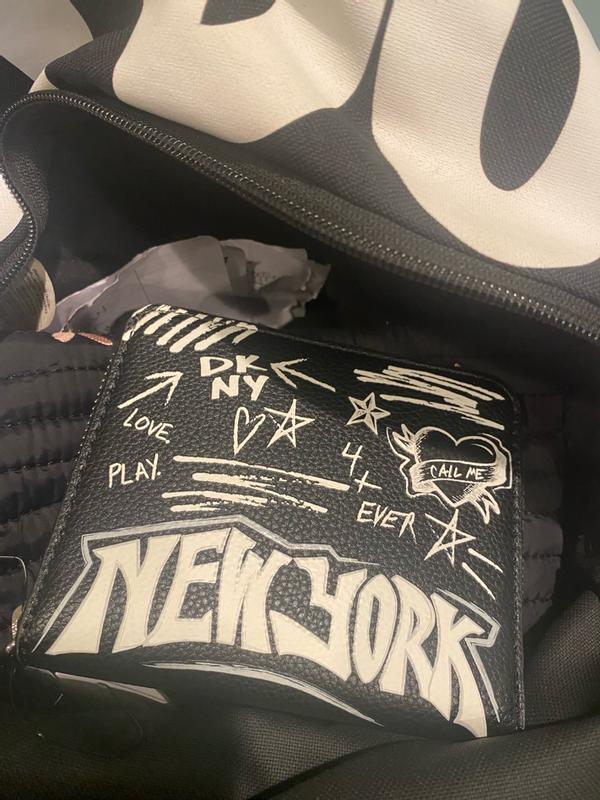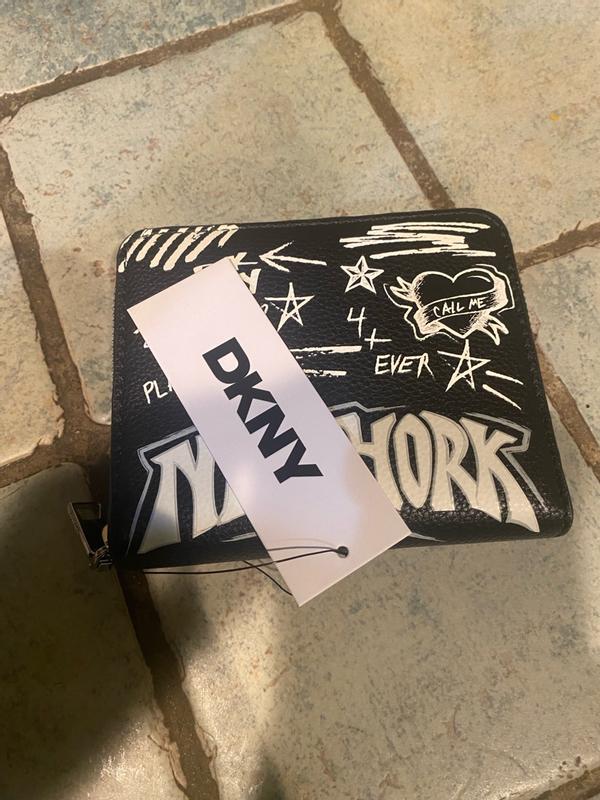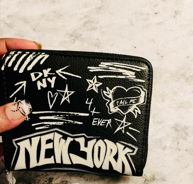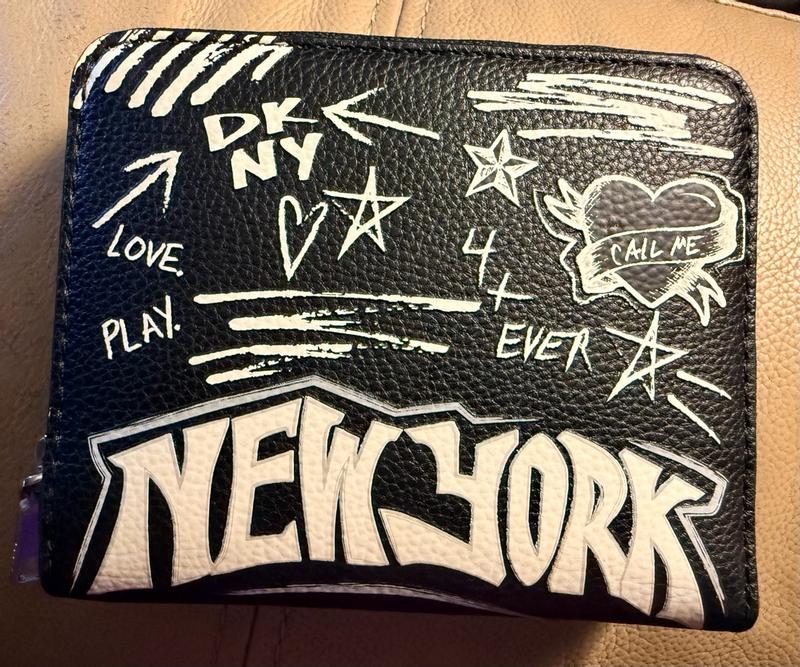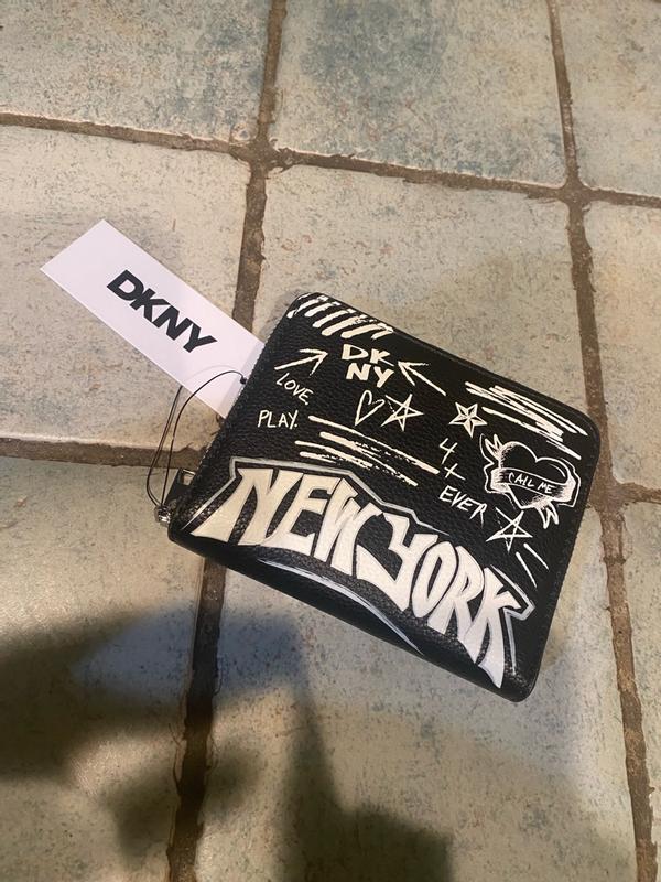 Just got my hands on this super cool DKNY New York wallet, and I'm already obsessed! The design is absolutely striking—the graffiti-style 'New York' print gives it such an edgy, urban vibe that perfectly matches my aesthetic. It's surprisingly practical for its size, fitting all my essential cards and some cash without feeling bulky. The durability seems promising; the material feels robust and well-made, ready to withstand daily use. My only minor wish is that it had a bit more interior organization for coins, but honestly, the overall look and feel are fantastic. Definitely a statement piece that’s both chic and functional!