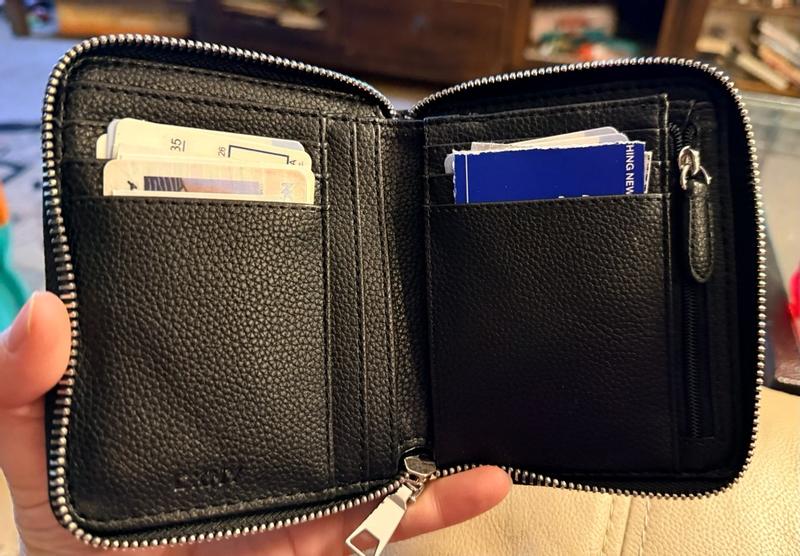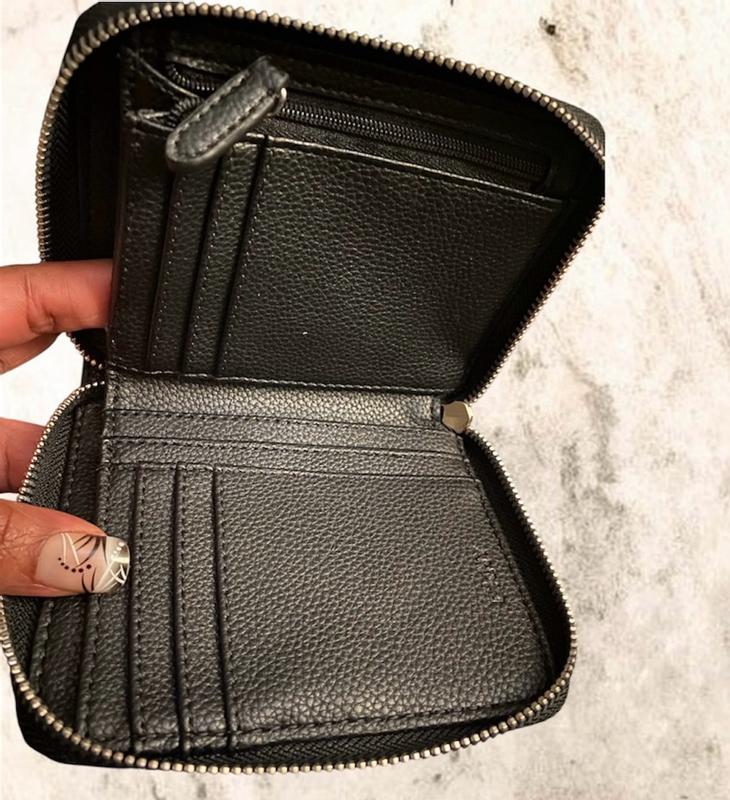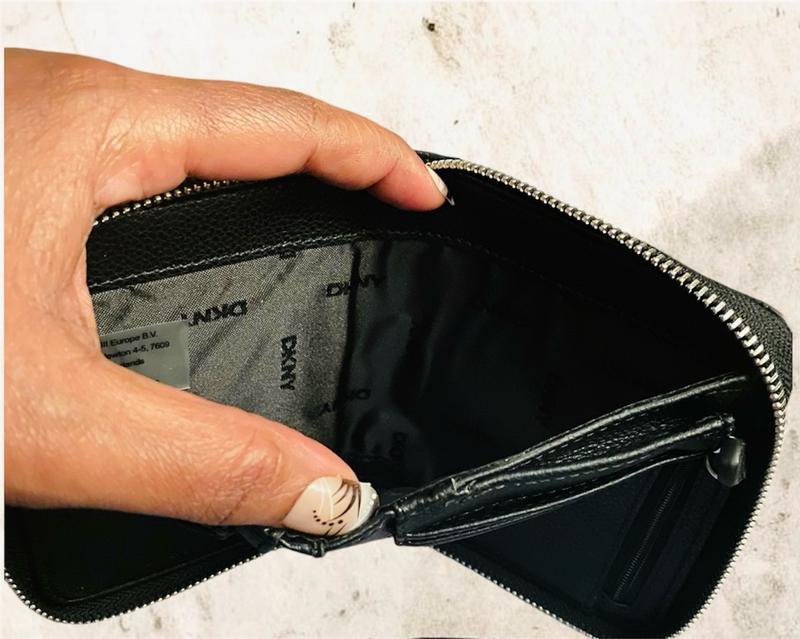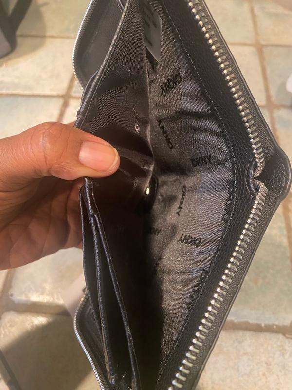 I love this DKNY small zip around(wallet) It is the perfect little but roomy, lightweight everyday wallet. The leather like material feels luxe, the zip is smooth and it fits my cards without feeling bulky. Sleek, compact and stylish-exactly what I wanted.