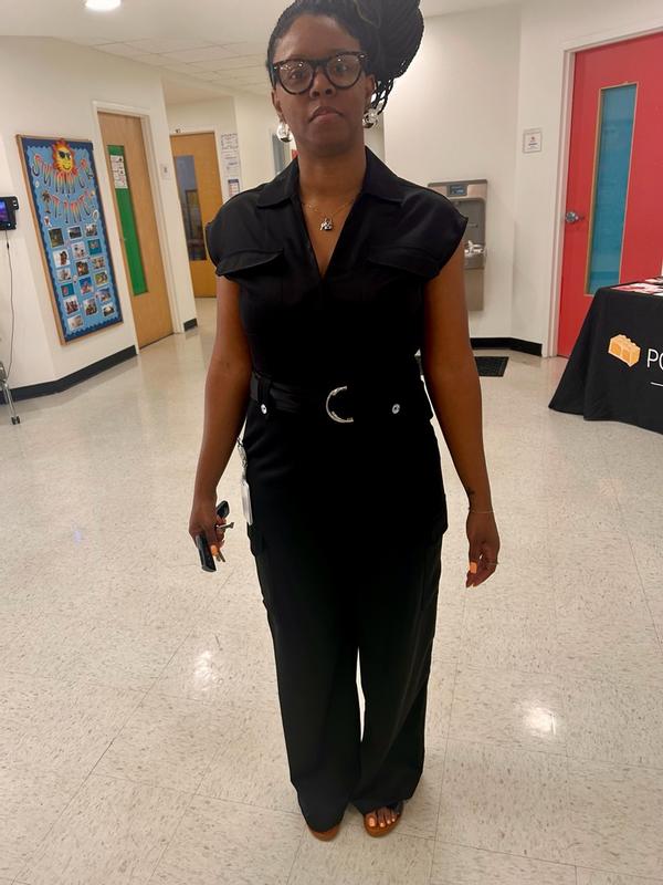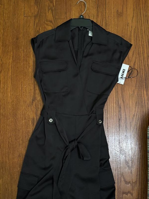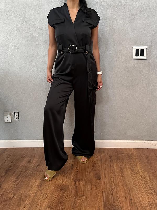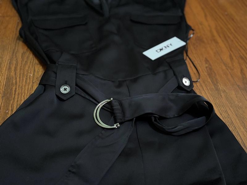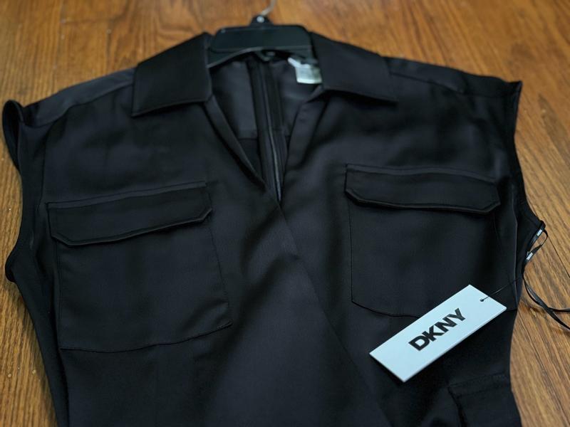 This DKNY jumpsuit looked and felt amazing! The shape helped to flatter the right areas and hide my midsection! It was super comfortable and the fabric was silky without wrinkling!