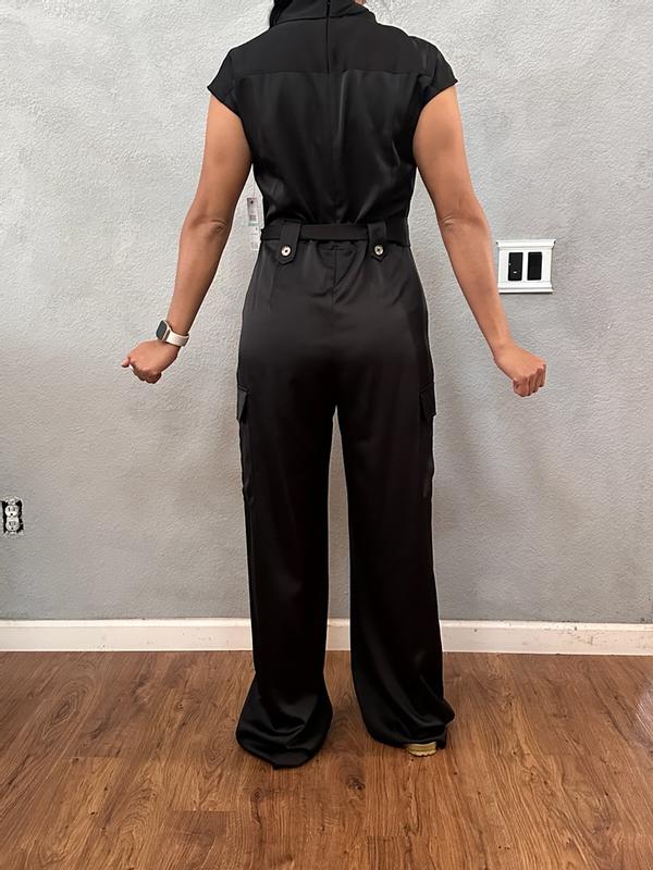 Women's Cap-Sleeve Belted Cargo Jumpsuit