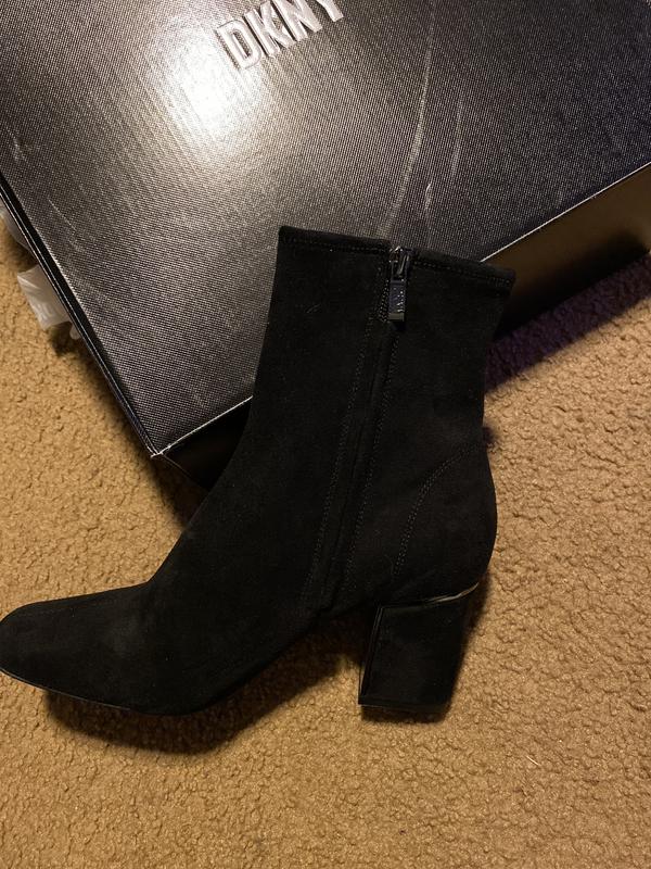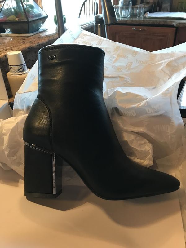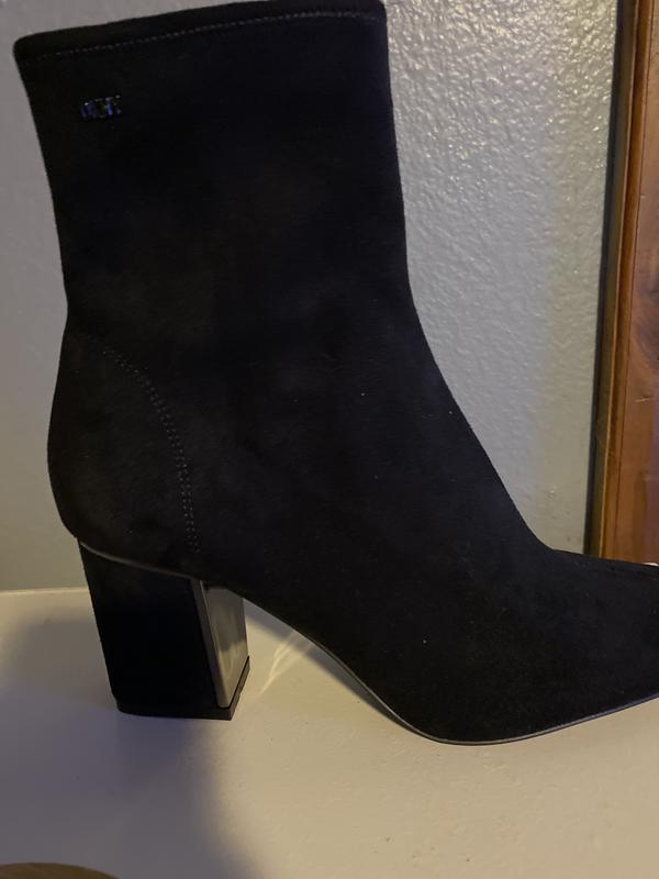 These are really cute ankle boots. They are a nice black color. The heel is pretty wide which I like. They are true to size. They are easy to put on and take off. These would look great with a skirt and sweater.