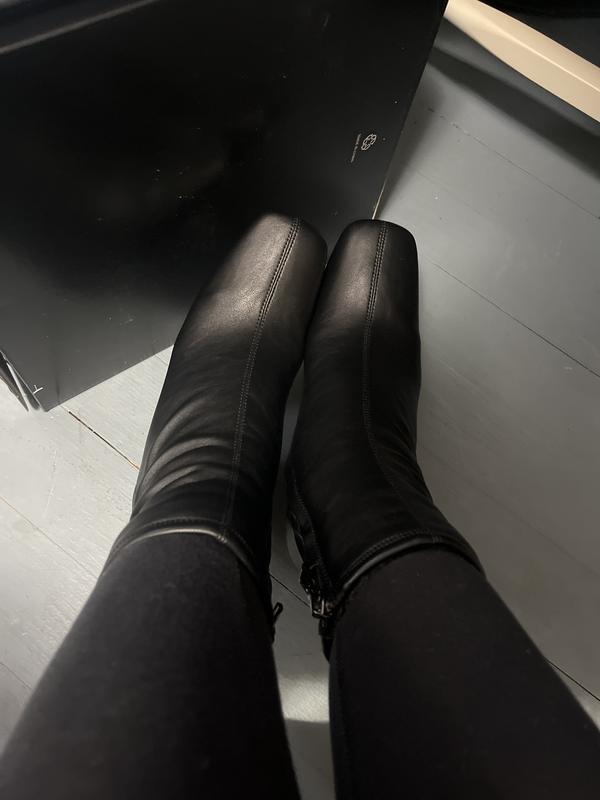 been wearing these like everyday. so easy to dress up or down. definitely giving 90s vibes and they look great with everything. comfortable too from someone who doesn't really wear heels. love that they hug my ankle like the sock boots