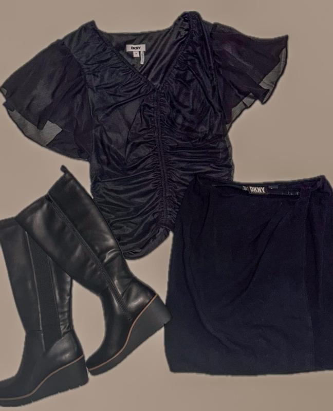 This is one of those timeless “going out” tops that really can be paired with almost anything. I loved it with this vintage DKNY mini skirt and knee boots but it also looked great with jeans and black loafers. It is snug but it fit true to size on me, I would just say if you’re unsure or want more room in the body, size up. Definitely a staple in my wardrobe!