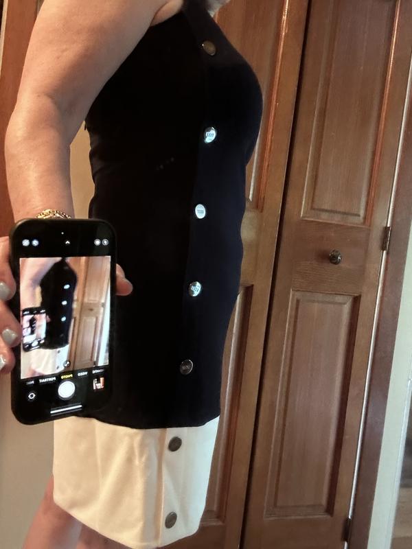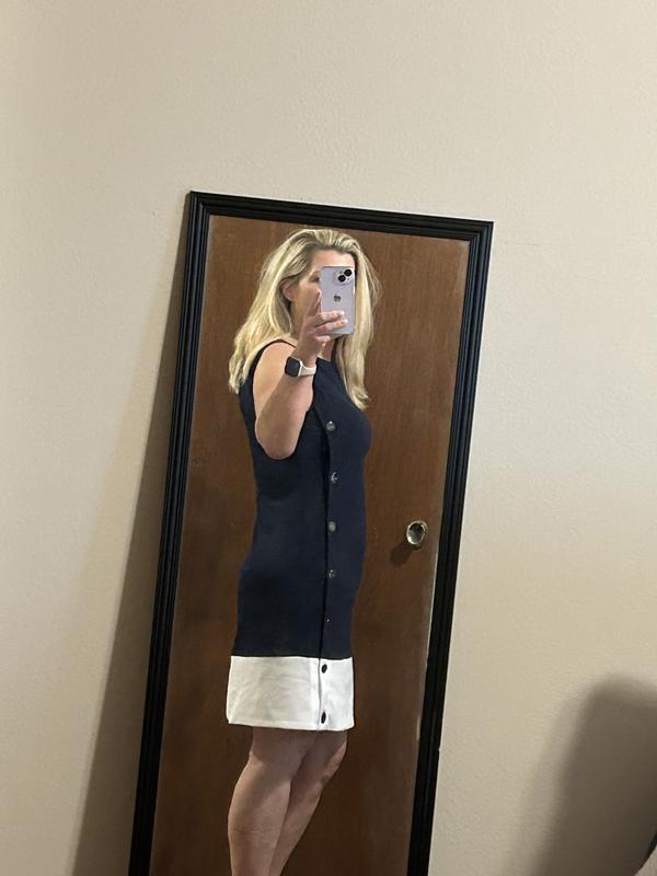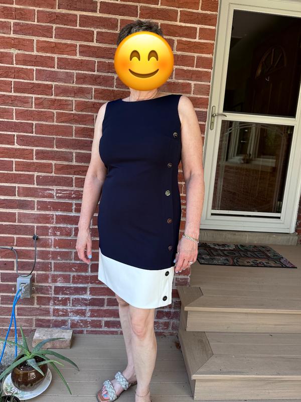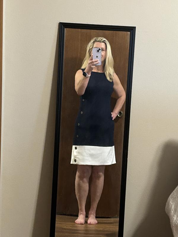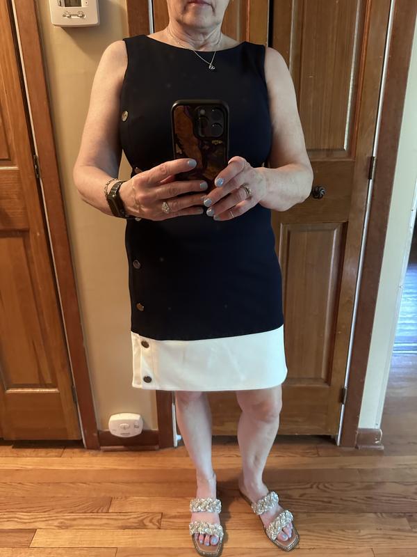 Women's Colorblock Button Sleeveless Shift Dress