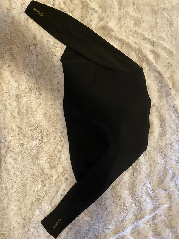 This blazer is a nice alternative to the traditional jacket. With a single button, it sits slightly higher on your waist for a tailored look. The jacket is true to size and looks great with pants or dresses down with jeans and heels. The material is good quality and feels like it withstand usage. I