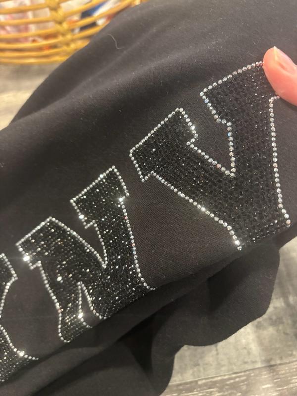 DKNYWomen's Exploded Rhinestone Varsity Logo High Rise Relaxed Jogger