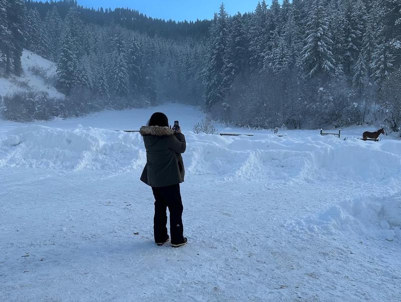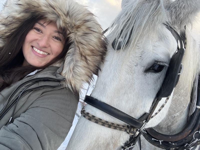 Color of coat was darker in person/didn't look like photo. Would have liked the lighter color in the photo better. Only kept it because I needed a coat right away. Loved the luxurious hood and good quality. Coat ran a bit small.