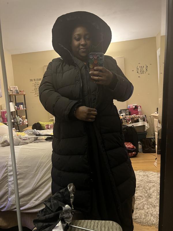 I bought this coat to take to New England in February. It was very warm and cozy. My complaints were that the hood is not detachable or adjustable (the drawstring/elastic seems to be for decoration only), and that there is no secure pocket (no pocket inside nor a zipper on an outside pocket). Otherwise, I love it.